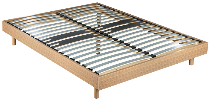 Ebac Dimensions : l 90/140/160 x 13 x p 190/200 cm Le mot de l'expert Sommier Décor avec 2 lattes larges sur la zone lombaire Les plus 3 coloris au choix Structure Encadrement : MDF Décor. Hauteur 12,5 cm (28 avec les pieds), épaisseur 22mm. Finition : 3 coloris aspect bois. Débord d'encadrement par rapport au sommier pour éviter l'éventuel glissement latéral ou longitudinal du matelas. Suspension 18 lattes décord multiplis bois Anti-Gliss dont : - 16 lattes. Largeur 50mm, épaisseur 8mm. - 2 lattes spéciales "zone lombaire". Largeur 125 mm, épaisseur 8mm. Options Livré avec pieds + pied central sur les 140/190 et 160/200 Conditionnement Carton individuel