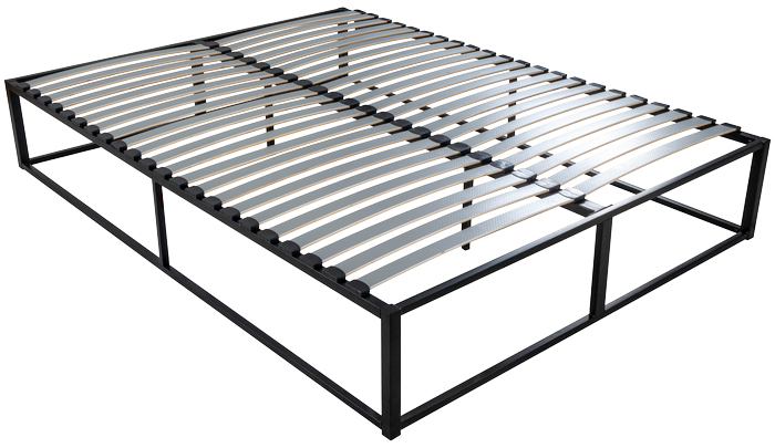 Ebac Dimensions : l 140/160 x h 26/30,5 x p 190/200 cm Structure Cadre métal cintré en tube rectangulaire de 30x30 Peinture époxy gris, la garantie quasi absolue contre la corrosion. Suspension 20 lattes décor multiplis bois Anti-Gliss Largeur 50mm, épaisseur 8mm. Embouts polyéthylène clipsés. Conditionnement Individuel sommier