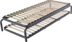 Ebac Dimensions : l 80/90/195,5 x h 35 x p 190 cm Le mot de l'expert Agrée aux normes de sécurité par le FCBA. Spécificités Piètement L304 en tube de 25x25mm, livré avec quincaillerie. Pieds G304 escamotables par ressorts de diamètre 25mm. Structure Cadre métal cintré en tube rectangulaire de 40x27mm. Encombrement : Hauteur 35cm, longueur 195,5cm. Agrée aux normes de sécurité par le FCBA. Épaisseur disponible pour la literie sur le lit coulissant: 14cm. Peinture époxy grise, la garantie contre la corrosion. Suspension - 20 lattes multiplis bois: Largeur 50mm, épaisseur 8mm. - Embouts polyéthylène clipsés. Options Piètement L304 en tube de 25x25mm, livré avec quincaillerie. Pieds G304 escamotables par ressorts de diamètre 25mm. Conditionnement Individuel sous film plastique sommier