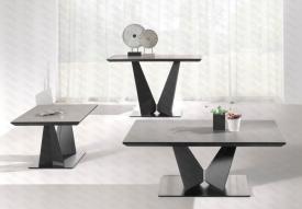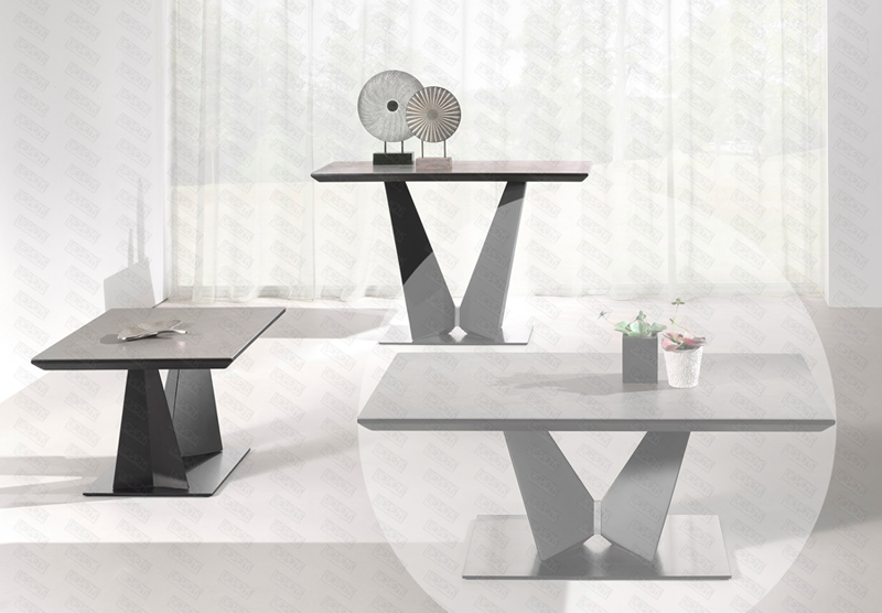 Dimensions : l 120 x h 45 x p 60 cm Plateau en céramique de 4 mm collé sur un panneau MDF finition grise. Pieds : MDF finition anthracite et base en acier inoxydable brossé. table basse