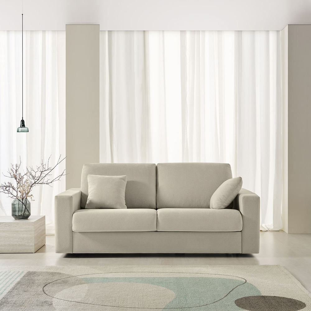 Mopal Matelas de 14 cm Dimensions : l 116/... x h x p cm Avec un design élégant et des lignes douces, le canapé-lit Thais apporte de la sérénité à n'importe quel espace. Il est parfait pour des moments de détente et de repos. MÉCANISME: Italien. Acier électrosoudé et grille métallique. STRUCTURE: Bois de pin, renforcé avec panneaux de particules. ALM. SIÈGE: Mousse de polyuréthane 30 kg/m3 recouvert de fibre de polyester. ALM. DOS: Mélange de fibres creuses siliconées avec des flocons de polyuréthane. AMOVIBLE: Coussins d'assise, de dossier et de coussin. MATELAS: Longueur 190 cm, Épaisseur 14 cm. Caoutchouc mousse HR 30 kg. rembourré. OPTIONS: Matelas Visco-HR avec rehausse.