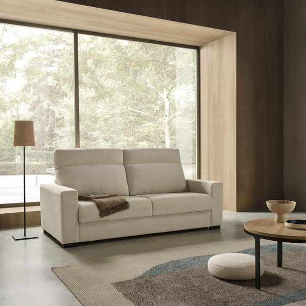 Mopal Le canapé-lit Crono Il se distingue par son design fonctionnel et ses lignes modernes. Dimensions : l 116/... x h x p cm C'est une option pratique et élégante pour les espaces contemporains. MÉCANISME: Italien. Acier électrosoudé et grille métallique. STRUCTURE: Bois de pin, renforcé avec panneaux de particules. COUSSIN DE SIÈGE : Mousse de polyuréthane 35 kg/m3 recouvert de fibre de polyester. COUSSIN DE DOSSIER : Fibre creuse siliconée. AMOVIBLE: Coussins d'assise et de dossier. MATELAS: Longueur 190 cm, Épaisseur 15 cm. Caoutchouc mousse HR 30 kg. rembourré. PATTES : Pol numéro injecté noir. OPTIONS: Matelas Visco-HR avec rehausse. canapé-lit