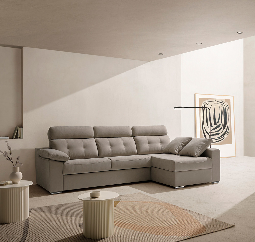 Mopal Dimensions : l 116/... x h x p cm Avec un design qui optimise l'espace, le canapé-lit Nerea C'est une solution pratique et élégante. Son essence fonctionnelle s'adapte à n'importe quel environnement. MÉCANISME: Italien. Fabriqué en acier électrosoudé et grille métallique. STRUCTURE: Bois de pin, renforcé de panneaux de particules. COUSSIN DE SIÈGE : Mousse de polyuréthane 35 kg/m3 recouvert de fibre de polyester. COUSSIN DE DOSSIER : Fibre creuse siliconée. AMOVIBLE: Coussins d'assise, de dossier et d'accoudoirs. MATELAS: Longueur 195 cm, Épaisseur 16 cm. Caoutchouc mousse HR 30 kg. rembourré. PATTES : Chrome (option polymère noir). OPTIONS: Matelas Visco-HR avec rehausse. Chaise longue réversible à accoudoir court. canapé lit