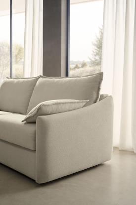 Le canapé-lit Tania, avec ses lignes douces et accueillantes, crée une atmosphère de paix et de sérénité. C'est le compagnon idéal pour les après-midis de farniente.