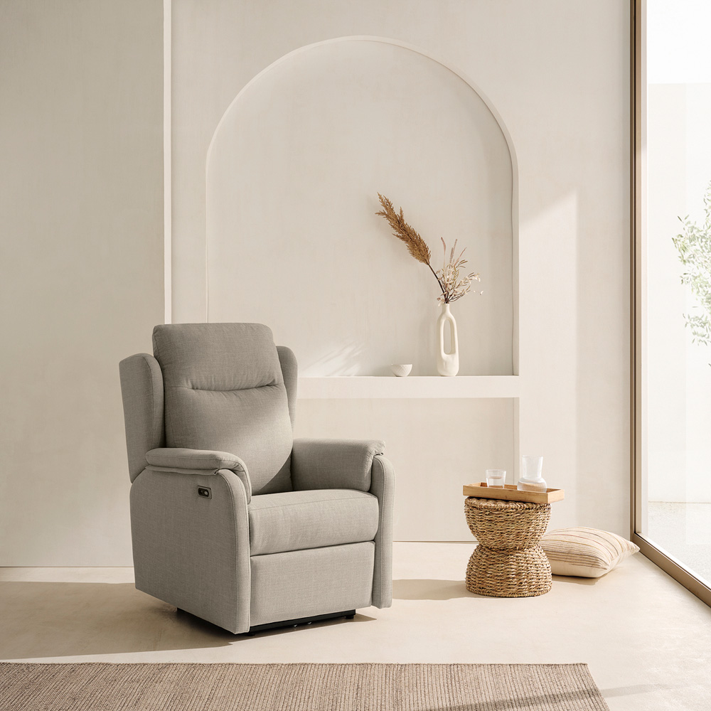 Mopal Fauteuil relax levier, motorisé et élévateur Dimensions : l 115/... x h x p cm Avec des lignes douces et un dossier enveloppant, le fauteuil Bianca invite à la détente quotidienne. Son design ergonomique et ses fonctionnalités en font un incontournable du confort d'aujourd'hui. MÉCANISME: Levier de détente, motorisé ou élévateur. STRUCTURE: Bois de pin renforcé panneaux de particules. SUSPENSION DU SIÈGE : Sangles enduites de la plus haute qualité. COUSSIN DE SIÈGE : Mousse de polyuréthane 35 kg/m3 recouvert de fibre de polyester. COUSSIN DE DOSSIER : Fibre creuse siliconée. AMOVIBLE: Coussin d'assise, de dossier et d'accoudoir. CHARGEUR USB DANS LE PANNEAU DE BOUTONS DE TYPE C. Disponible. OPTION DE COMMANDE FILAIRE. Disponible. fauteuil relax et relaxation